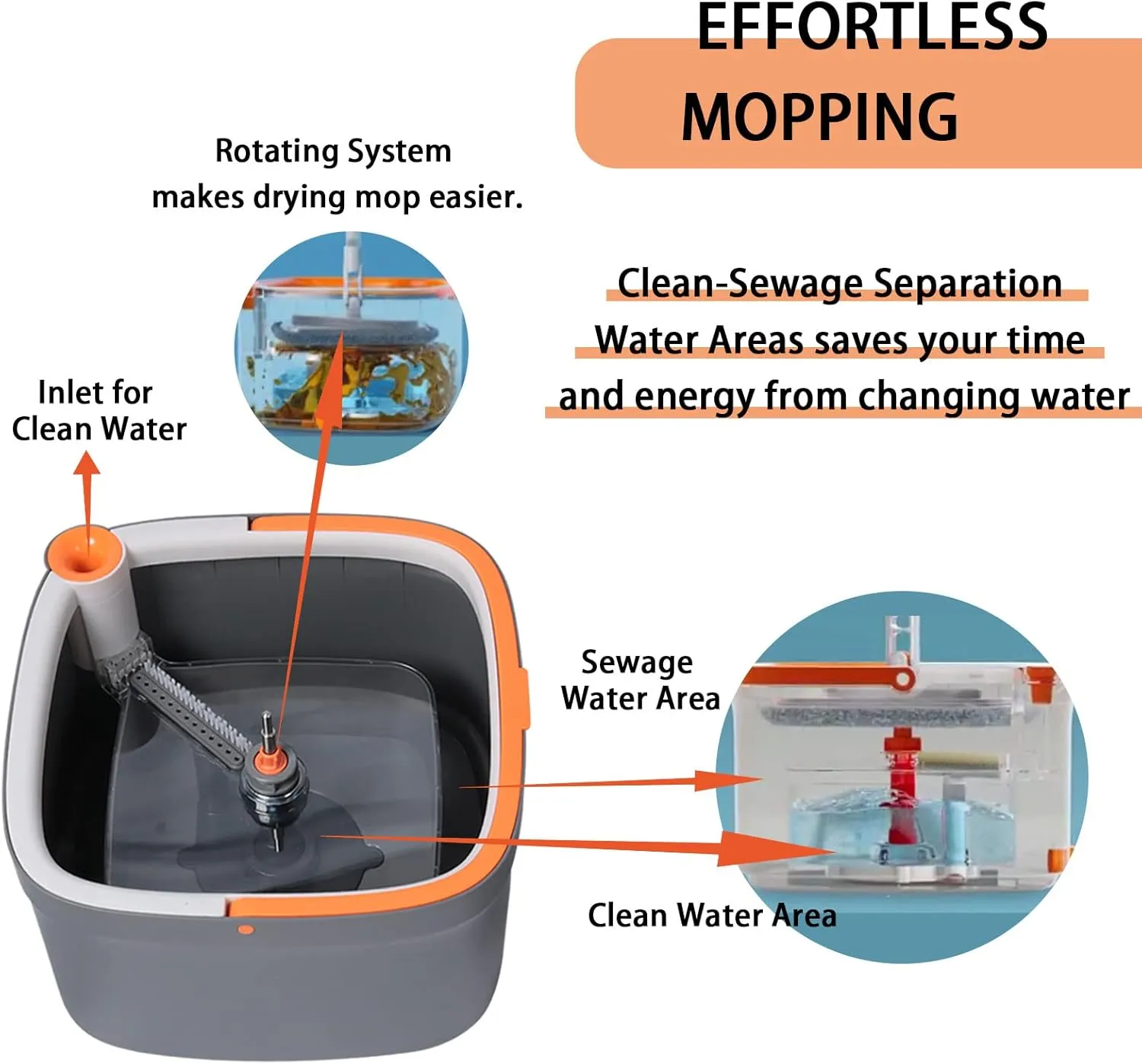 "سهل الاستخدام والتنقل، مساحة موب دوارة ودلو توفر لك تنظيفًا سريعًا وبجهد أقل."