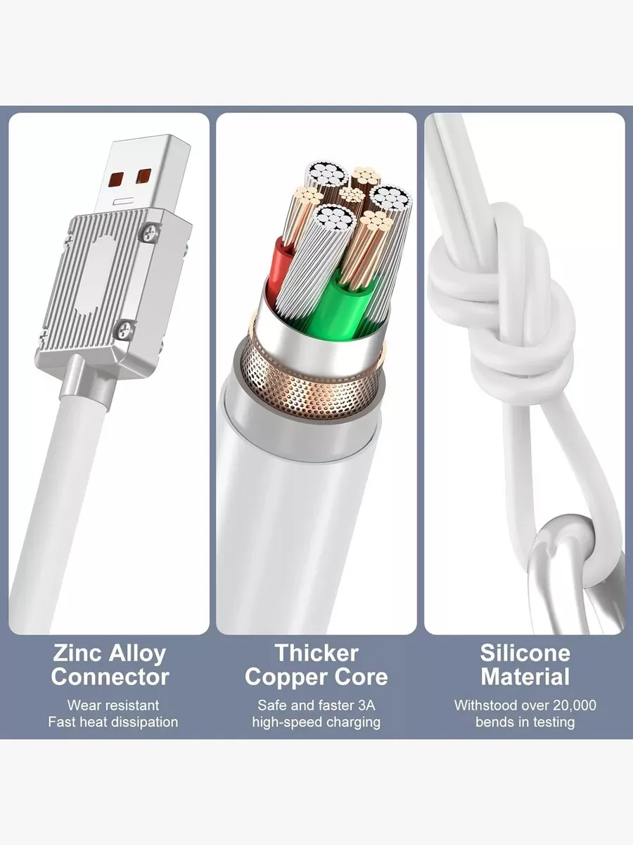 - تحمل قوي يدوم أكثر: بفضل منفذ شحن إضاءة متين جدًا يتحمل 12,000 تجربة إدخال وإزالة، ومتانة تتجاوز الكابلات العادية 3 مرات.