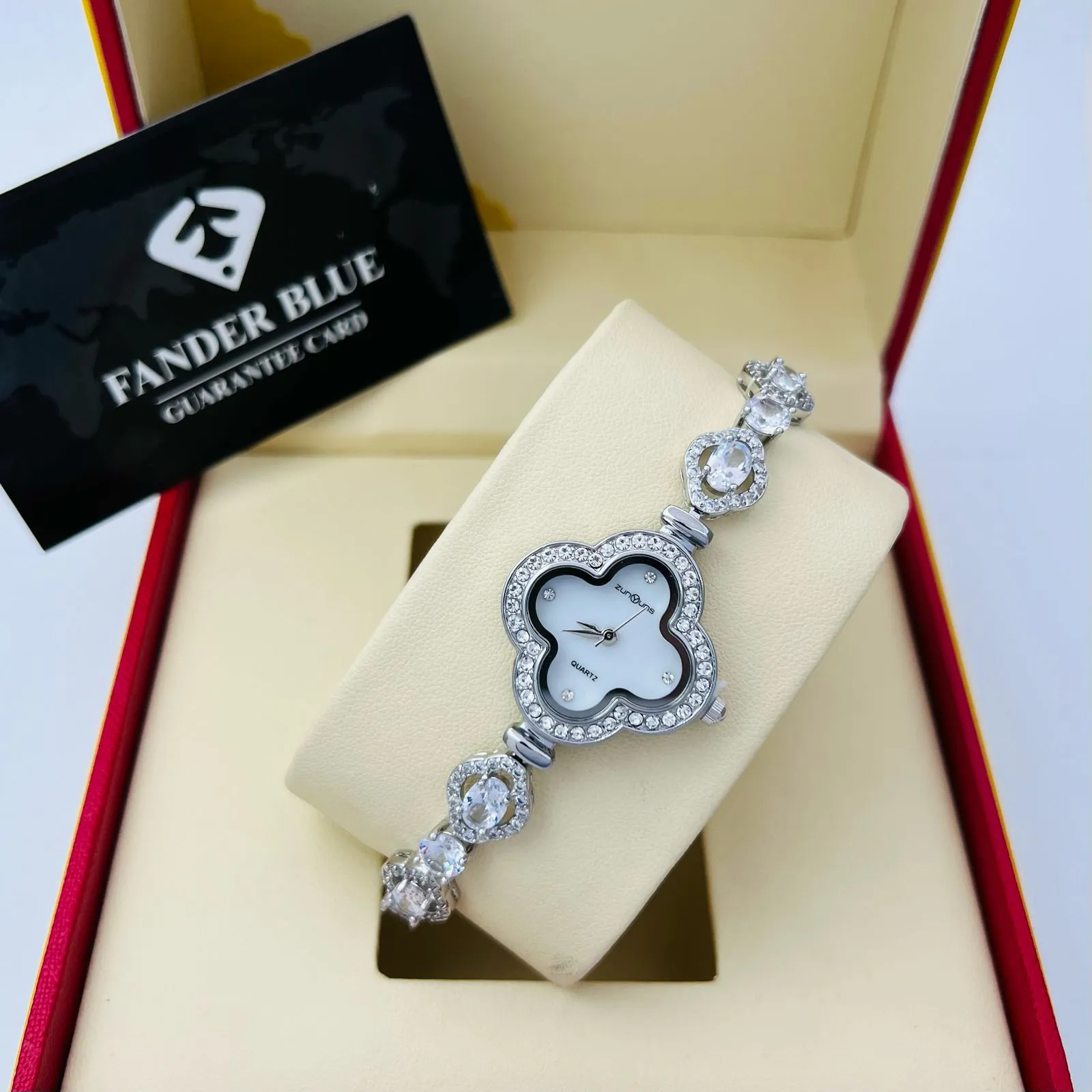 ساعة فندر بلو نسائية كلاسيك سيلفر ومينا أبيض (A8)