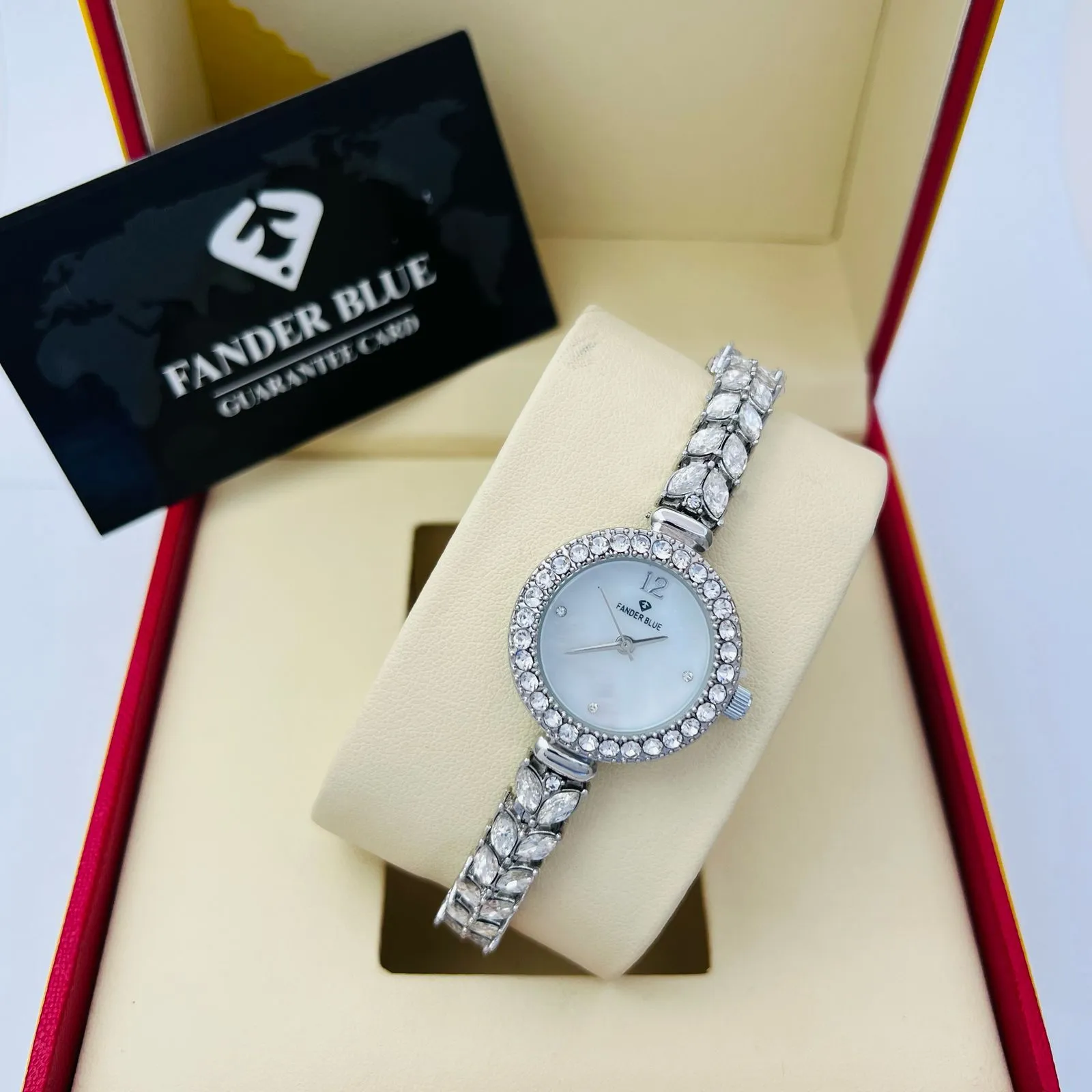 ساعة فندر بلو نسائية كلاسيكية مينا راوند سيلفر وأبيض (A28)