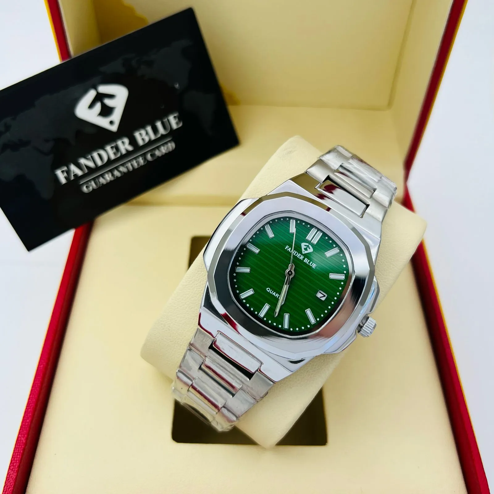 ساعة فندر بلو رجالي كلاسيك سير سيلڤر مينا أخضر ملكي