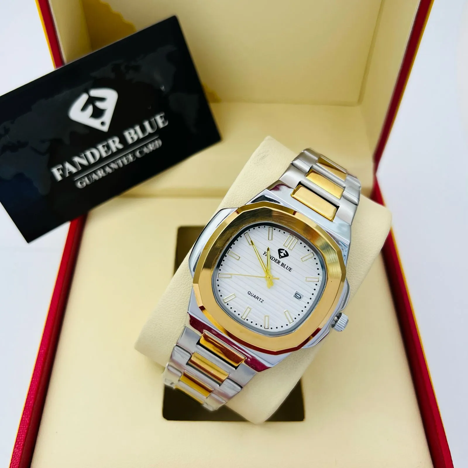 ساعة فندر بلو رجالي كلاسيك سير سيلڤر وجولد مينا أبيض
