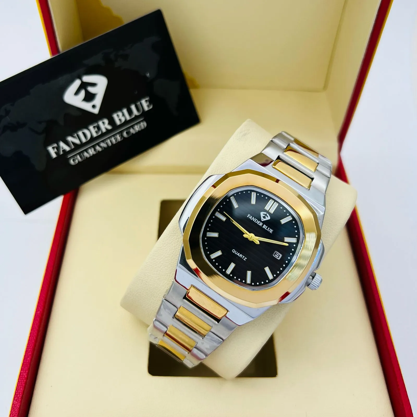 ساعة فندر بلو رجالي كلاسيك سير سيلڤر وجولد مينا أسود